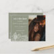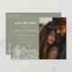 Cactus Line Art Desert Photo Save the Date Invitation/Faire-part propose des peintures à la main rustiques, des cactus dessinées à la main sur un arrière - plan de sable neutre avec typographie moderne et script avec votre photo préférée. Le verso de la carte postale de l'invitation comprend les renseignements sur votre adresse de retour et l'URL du site Web du mariage. Notre modèle de haute qualité vous permet d'éditer facilement votre fichier Save the Date. Le texte et les couleurs sont modifiables. Montré en vert olive.