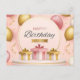 Carte Postale cadeaux d'anniversaire amour gâteau or ballons ros