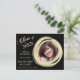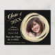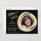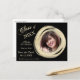Il y a un élégant cadre circulaire avec pinceau de peinture dorée pour votre photographie sur le côté droit de cette annonce de remise de diplôme "Enregistrer la date", avec votre texte personnalisé en or assorti à gauche. Tout est placé sur un fond noir dramatique. Le verso de la carte comporte un champ de texte supplémentaire si nécessaire. Tout le texte sur le devant est également facilement personnalisable.