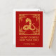 Cet élégant design motif du Nouvel An présente un serpent chinois doré avec un cadre décoratif grec sur un arrière - plan rouge.