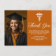 Une carte postale de remerciement de fin d'études de faculté de médecine classique personnalisée en orange et blanc pour un collège ou une université de la promotion 2024. Personnalisez avec le nom de votre école et votre promotion sous le caducée et la calligraphie pour une carte postale photo de remise des diplômes élégante et personnalisée avec votre portrait de fin d'études.