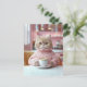 Un chateau moelleux aux yeux larges dans un doux pull rose profite d'un latte dans un cadre chic de café pastel. L'art du latte en forme de coeur et l'éclairage chaleureux créent une atmosphère chaleureuse et fantaisiste, idéale pour les amoureux de les chats comme pour les amateurs de café.