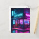 Un café coréen cosy à Séoul, éclairé par de petites lumières néons, à l'ambiance artistique de style lofi.