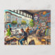 Un cadeau parfait pour les amateurs de voyage et de café. La peinture à l'aquarelle saisit de façon saisissante l'atmosphère excentrique et vibrante d'un café du quartier Mission à San Francisco. A l'intérieur, des peintures murales audacieuses, des murs en briques apparentes et des tables en bois rustique donnent une allure créative. Un homme dans une veste en cuir vintage dessine des croquis tout en sirotant un expresso, et une femme aux cheveux bleus vifs travaille sur son ordinateur portable à côté d'un croissant. Un groupe d'amis joue aux échecs sur une table d'angle colorée. Le barista, vêtu d'un tablier vert vif, lèche-glaces derrière le comptoir près d'un coque de viennoiseries aux tons néons. Par de grandes fenêtres, les rues animées du quartier Mission District, avec des rues animées d'art urbain et des cyclistes, sont visibles. Sur le patio, un homme dans un casquette en paille serenade les patrons, mêlant énergie et charme dans cette scène de café unique.