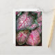 Caladiums peinture à l'aquarelle d'art tropical et dessins au trait de stylo et d'encre rose et vert plante veiné. Illustration d'art contemporain imprimé à giclee