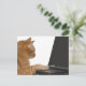chat tabby orange ou gingembre utilisant un ordinateur portable