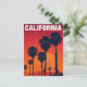 Capture the intense, warm colors of a California sunset with this bold, graphic retro travel postcard. The design features the iconic silhouette of tall palm trees against a fiery orange and red sky, evoking the laid-back, beautiful atmosphere of Southern California and the West Coast. This is an essential piece for collectors of stylized Americana and vintage poster art.