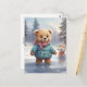 Câline l'ours a créé un ami de neige cool. Adorable ours en peluche tout habillé pour l'hiver s'amuse à l'extérieur. L'image détaillée est rehaussée par l'utilisation de couleurs douces. Thème idéal pour une célébration hivernale. Fait partie de la collection Winter Friends.