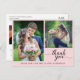 Carte Postale Calligraphie 3 Photos Mariage Merci rose