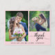 Dites "merci" à votre invité mariage avec cet élégant texte calligraphique "merci". L'avant offre deux photos, une verticale et une carré sur un arrière - plan rose clair. L'arrière offre une photo horizontale et un texte personnalisé pour un message de remerciement personnel.