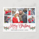 Calligraphie moderne Script 5 Photo Couple Photo Collage Joyeux Noël Carte postale inclut Watercolor Christmas Holly Berries - Script rouge