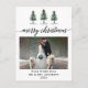 Script de calligraphie moderne, Aquarelle Pine Arbres, Joyeux Noël Mariage Photo Carte postale de Noël