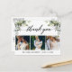 Calligraphie Moderne, Élégante Aquarelle Verdure, Carte de Remerciement de Mariage avec 3 Photos comprend des feuilles d'eucalyptus, du feuillage botanique vert, des feuilles bleu poussiéreux et d'autres verdures botaniques magnifiques.