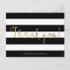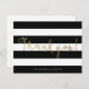 Carte de remerciement à rayures noir et blanc (plat) personnalisée, moderne, avec "Merci !" en fausse calligraphie de feuille d'or. VEUILLEZ NOTER : La carte imite un effet de feuille, mais n'est pas réellement déjoué.