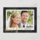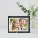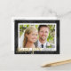 Cette carte postale de remerciement de mariage élégante présente un faux papier doré, une calligraphie à lettres manuscrites qui dit "merci", un arrière - plan d'aquarelle noire, et une photo horizontale.