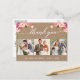 Calligraphie Moderne, Aquarelle Fleurs Roses, Mariage 3 Photo Remerciement Kraft Carte Postale