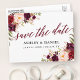 Calligraphie Élégante, Aquarelle Bourgogne Mariage Floral Enregistrer La Date Carte Postale