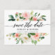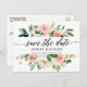 Script de calligraphie moderne. Elégante aquarelle rose Blush Floral Greenery Wedding Enregistrer La Date Carte postale comprend des roses blanches roses et d'autres belles verdure.