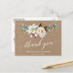 Écriture moderne de calligraphie, élégante flore botanique, carte de remerciement de mariage verdure kraft comprend des pivoines, des lys, du coton, des feuilles d'eucalyptus et d'autres verdures magnifiques.