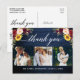 Calligraphie Moderne, Aquarelle Élégante Fleurs de Bourgogne Marsala, Mariage 3 Photo Carte de Remerciement comprend des roses bordeaux, des roses rouges, des roses roses, des tournesols et de la verdure. Bois Bleu Rustique.