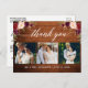 Calligraphie Moderne, Floral Élégant Aquarelle Bourgogne Marsala, Mariage 3 Photo Merci Carton de Bois Rustique