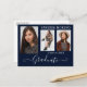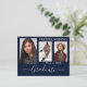 Belle, 3 photos, cartes postales de graduation avec script de calligraphie moderne en blanc sur bleu marine. Pour voir d'autres articles comme celui-ci, visitez mon magasin ici à "www.Zazzle.com/LakeViewCardCo". Merci