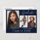 Belle, 3 photos, cartes postales de graduation avec script de calligraphie moderne en blanc sur bleu marine profond. Pour voir d'autres articles comme celui-ci, visitez mon magasin ici à "www.Zazzle.com/LakeViewCardCo". Merci