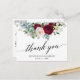 Écriture Calligraphique Moderne, Carte de Remerciement de Mariage à l'Aquarelle Élégante Fleurs et Feuillage de Marsala Bourgogne comprend des pivoines, des feuilles d'eucalyptus et d'autres feuillages magnifiques.
