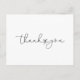 Cette carte postale de remerciement avec calligraphie simple élégante est parfaite pour un mariage simple. Le design simple et élégant présente une typographie classique et fantaisiste en noir et blanc. Personnalisez le verso de la carte postale, y compris vos noms, votre adresse de retour et un message de remerciement. Ou laissez la section du modèle de message de remerciement vide pour rédiger quelques mots sur chaque carte après leur arrivée. Ces cartes peuvent être utilisées pour un mariage, une fête prénuptiale, ou chaque fois que vous voulez dire merci.