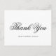 Elégante et classique carte postale de remerciement avec un design simple avec "merci" dans une calligraphie noire formelle avec votre nom d'entreprise dans une police serif, sur un arrière - plan blanc. L'arrière contient votre adresse de retour ainsi que votre message personnel, votre signature, votre titre et votre nom commercial. Un design traditionnel et élégant qui conviendra à tous les professionnels.