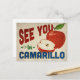 Carte postale Camarillo California vintage avec une belle pomme rouge, avec un texte amusant de style rétro qui dit : "Voir à Camarillo"