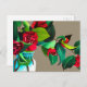 Carte Postale Camellias rouge avec fleur d'aquarelle de feuillag