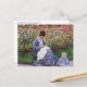 Carte postale d'art avec le tableau, Camille Monet et un enfant dans le jardin de l'artiste à Argenteuil (1875) par Claude Monet (1840-1926). Un portrait de la femme et de l'enfant de Monet sur fond de belles fleurs rouges et roses dans son propre jardin en France.