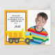 Joli petit garçon fête d'anniversaire photo carte de remerciements avec un camion à benne orange et jaune. Cette carte est entièrement personnalisable, alors ajoutez votre photo et placez votre texte dans les espaces prévus. Pour un contrôle plus créatif, utilisez le bouton "Customiser" pour changer la police, la taille de police ou la couleur.