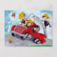 Carte Postale Camion de pompiers rouge avec des garçons pompiers