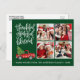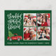 Calligraphie moderne Script Reconnaissant Grateful Bénis 4 Collage de photos Carte de vacances comprend un camion rouge vintage aquarelle avec arbre de Noël. Fond vert forêt.