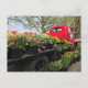 Carte Postale Camion rouge avec fleurs de printemps et arc en ci