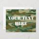 Camouflage pattern design postcards. Personalizable. Hunter camo / army colors.