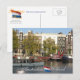 Carte postale du canal d'Amsterdam. Vue sur le canal d'Amsterdam avec bateau et abrite le paysage urbain lors d'une journée ensoleillée d'été en Hollande, La carte postale Pays-Bas. Cette carte postale ensoleillée d'Amsterdam est entièrement personnalisable, ajoutez votre texte et vos images ! Une belle carte postale Amsterdam Holland, envoyez-la à vos amis et/ou membres de votre famille !