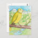 Un dessin au crayon coloré d'un canari assis sur une branche dans la prairie ouverte.