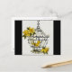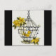 Petit canari jaune mignon dans une cage à l'ancienne avec des jonquilles jaunes. Un design idéal pour toutes sortes d'occasions.
