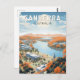 Conception de voyage vectorielle rétro de Canberra dans un style d'emblème. Canberra est la capitale de l'Australie, à l'intérieur des terres depuis la côte sud-est du pays. Entourée de forêts, de terres agricoles et de réserves naturelles, elle gagne son surnom, la "Capitale Bush".