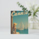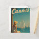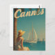 Cet élégant poster vintage saisit le charme intemporel de Cannes sur la Côte d'Azur. Une femme en tenue classique des années 1950 s'assoit gracieusement, admirant le port rempli d'élégants voiliers. La lumière méditerranéenne chaleureuse, les tons pastel et les textures rétro évoquent l'âge d'or du voyage à Riviera. Un hommage romantique et nostalgique au style du milieu du siècle et à l'élégance côtière, parfait pour les amateurs de mode vintage et de scènes balnéaires françaises.