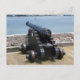 un canon authentique, avec des chariots à rouleaux en bois, surplombe la crique de St Augustine en Floride. La paroi rocheuse de coquina sur le Castillo de san Marcos maintient le canon en place. On peut également voir les marqueurs et bouées de canal dans l'entrée.