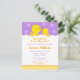 Cette invitation mignonne et amusante présente un adorable canard jaune et canard en bulles de bain savonneuses blanches sur un arrière - plan violet clair avec un ruban orange et rayures jaunes. Le texte combine écriture manuscrite et polices sans serif pour un look élégant et moderne. C'est parfait pour un Baby shower.
