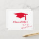 Nouvelle carte de voeux de remise de diplôme Lane - Remerciements de remise de diplôme, avec 'Promotion 2023', et une casquette de graduation rouge. Avec un modèle de texte pour votre message personnel.