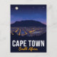 Experience the mesmerizing beauty of Cape Town, South Africa, at night with this captivating vintage-style postcard. The design features the iconic silhouette of Table Mountain overlooking the glittering city lights, all under a starry, full moon sky. This travel poster is perfect for lovers of South African destinations, stunning nightscapes, and natural landmarks. Ideal for sending greetings, keeping as a keepsake, or framing as dramatic wall art.