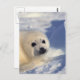 Un petit phoque du Groenland incroyablement mignon qui regarde la caméra alors qu'il est assis sur la glace.