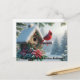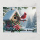 Carte Postale Cardinal d'hiver sur une maison d'oiseaux festive