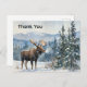 Cette carte postale présente une représentation aquarelle d'un paysage enneigé, avec des pins, des montagnes et un orignal mâle adulte. Conçue comme une carte de remerciement, elle est également facilement personnalisable pour répondre à divers besoins. Conçue par IA par Susang6.